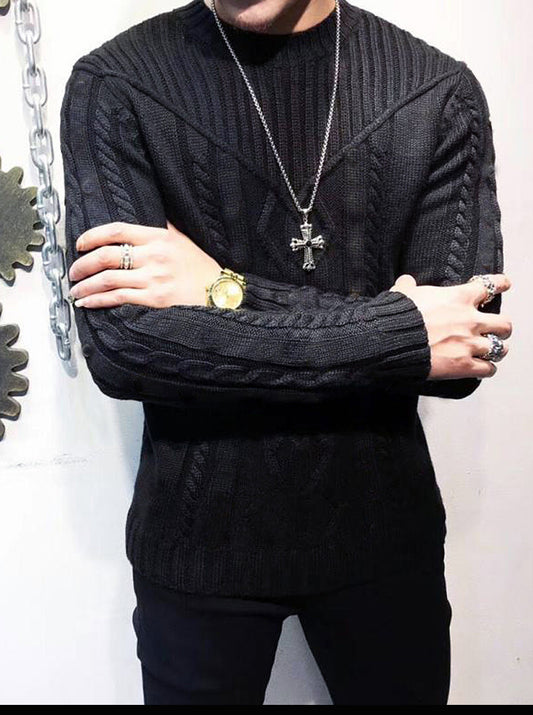 Men Solid Color Warm Jacquard Sweater
